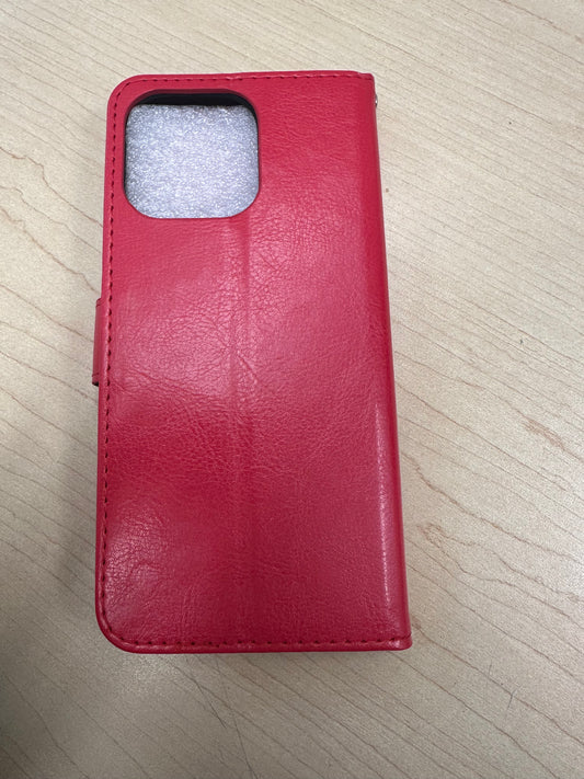 iPhone 14 Pro Max - Classical Leather Wallet Case- Red
